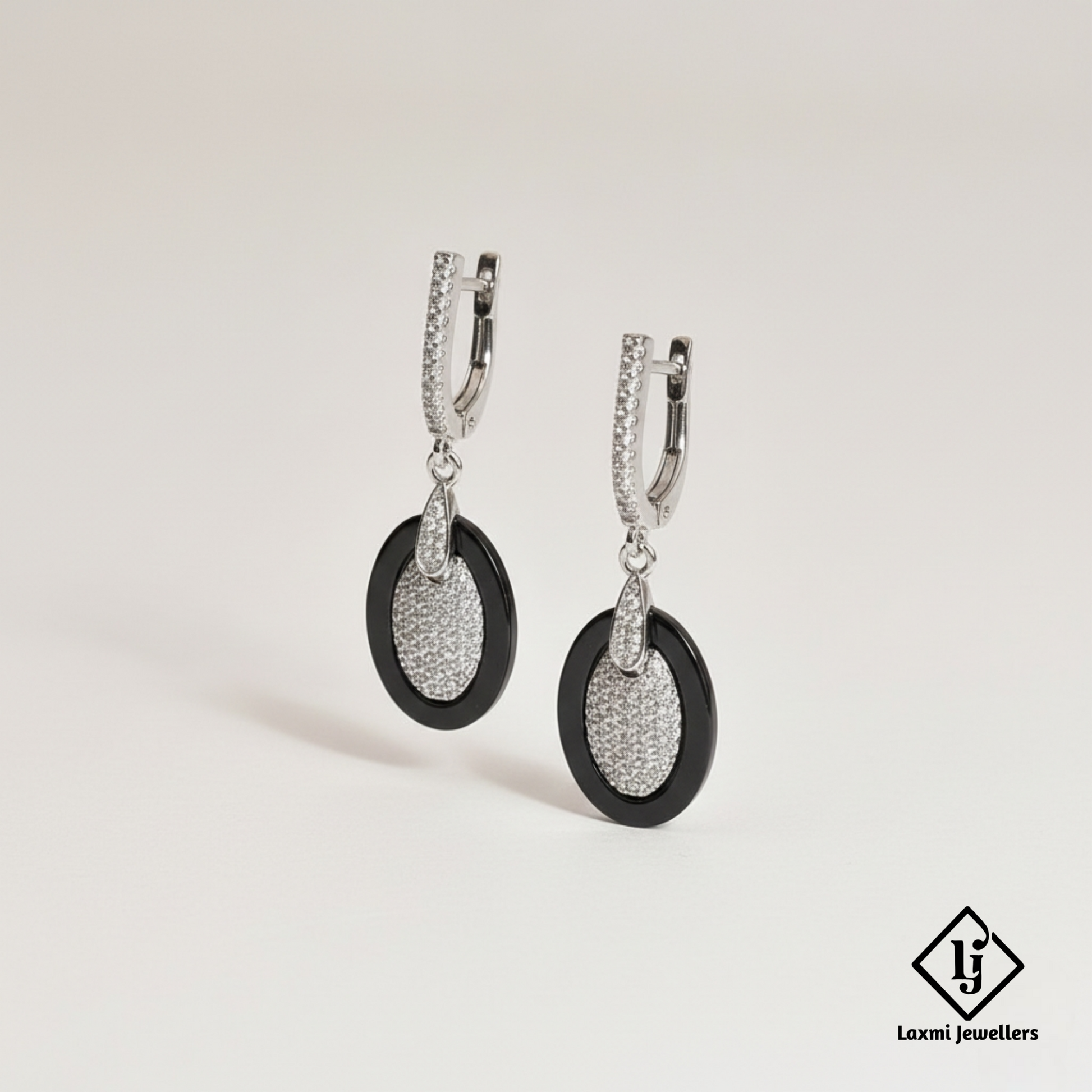 Shop 925 sterling silver Bali style black stone oval drop earrings. Stylish designer silver earrings perfect for party, festive and daily wear.