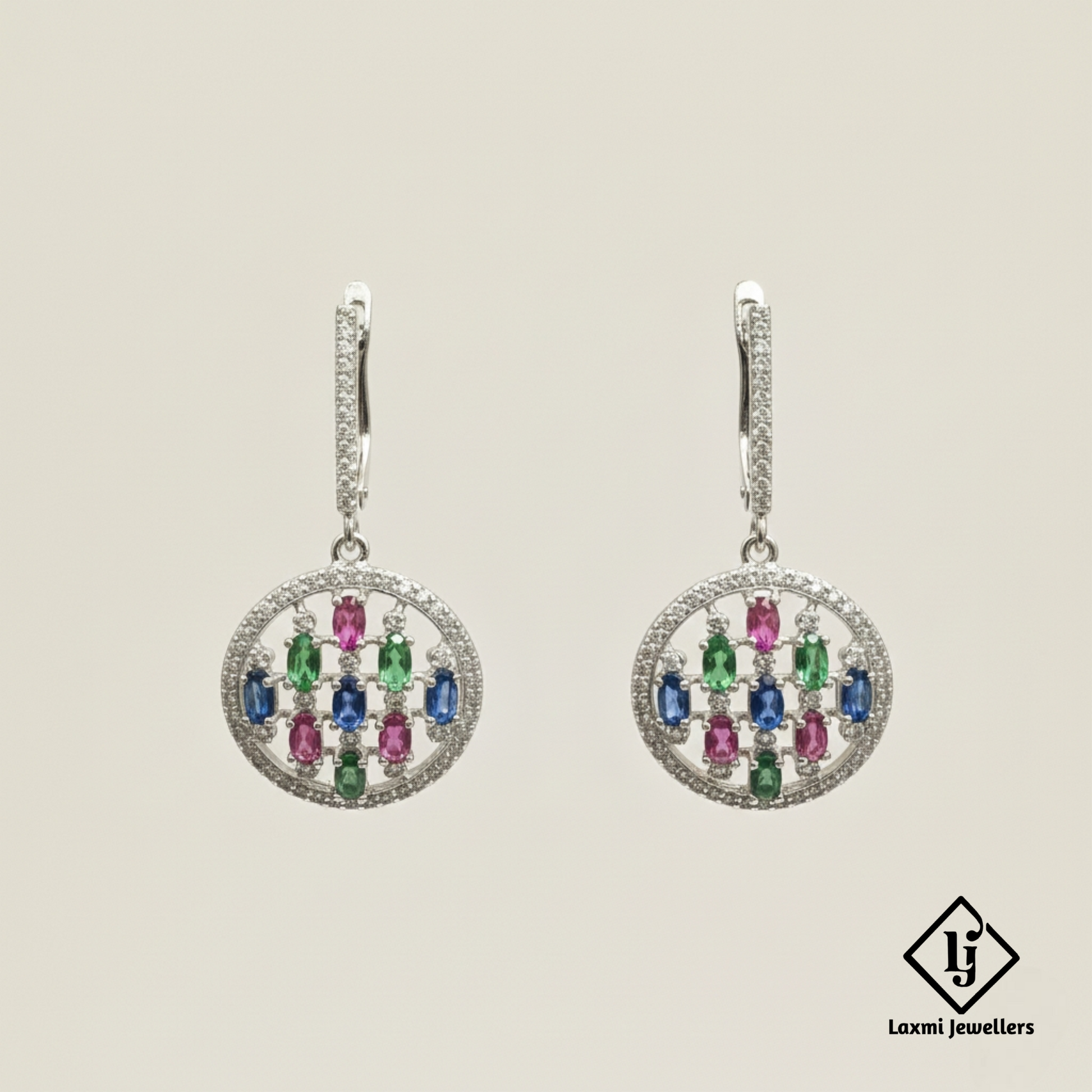 925 Sterling Silver Bali Style Multicolour Stone Earrings | Designer Silver Earrings for Women