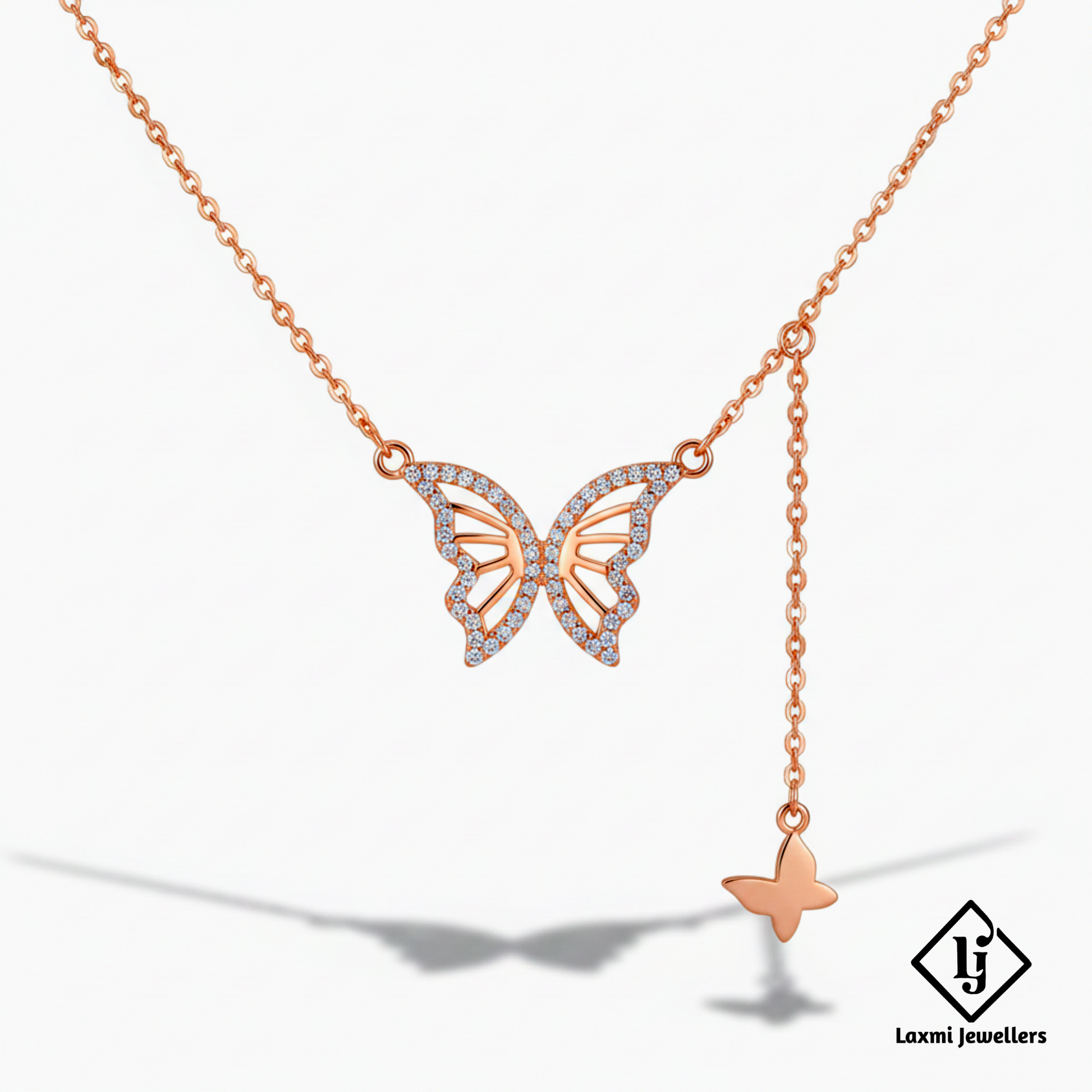 Rose Gold Crystal Butterfly Pendant Necklace for Women | Designer Butterfly Chain